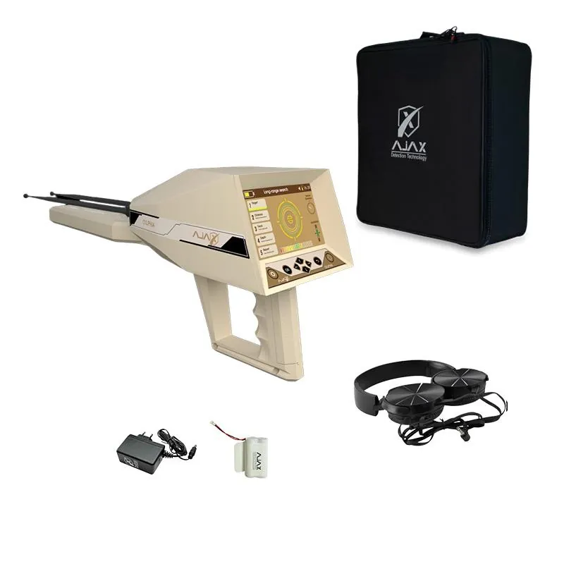 El detector de metales Alpha de Ajax Detection es un dispositivo revolucionario que cuenta con dos sistemas integrados de detección de larga distancia y técnicas para identificar y detectar oro, tesoros y metales. Con su diseño moderno, sistemas inteligentes y funciones de detección avanzadas, el Alpha se ha convertido en el primer dispositivo de detección de larga distancia del mundo.